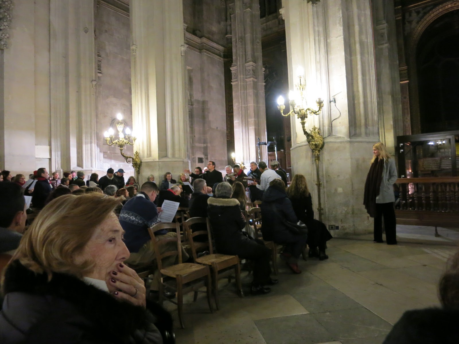 ミサのあとはみんなで聖歌を歌いましょうタイムでした。 有名なクリスマスソングの合唱が聞けました。 そうか、フランスの人たちはこうやってクリスマス・イブを過ごすんですね。 そして25日は家族で過ごすそうです。 だから明日はどこもお店が閉まるらしいです。 日本の大晦日と元旦の日のようですね。 |