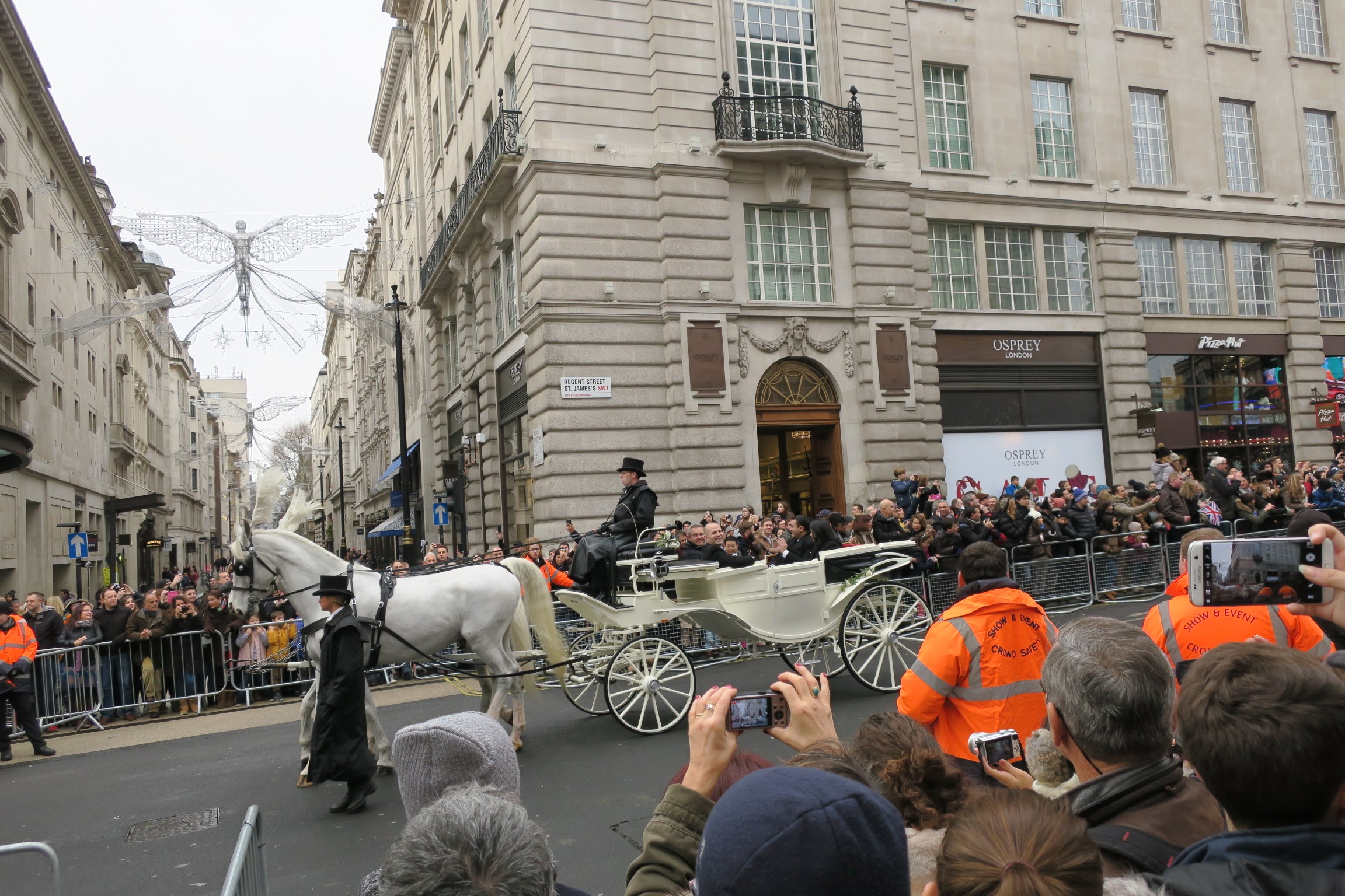 元旦の今日は商業施設の中心地、ピカデリー・サーカスでパレードをやっていました。写真はとてもロイヤルな方々。 |