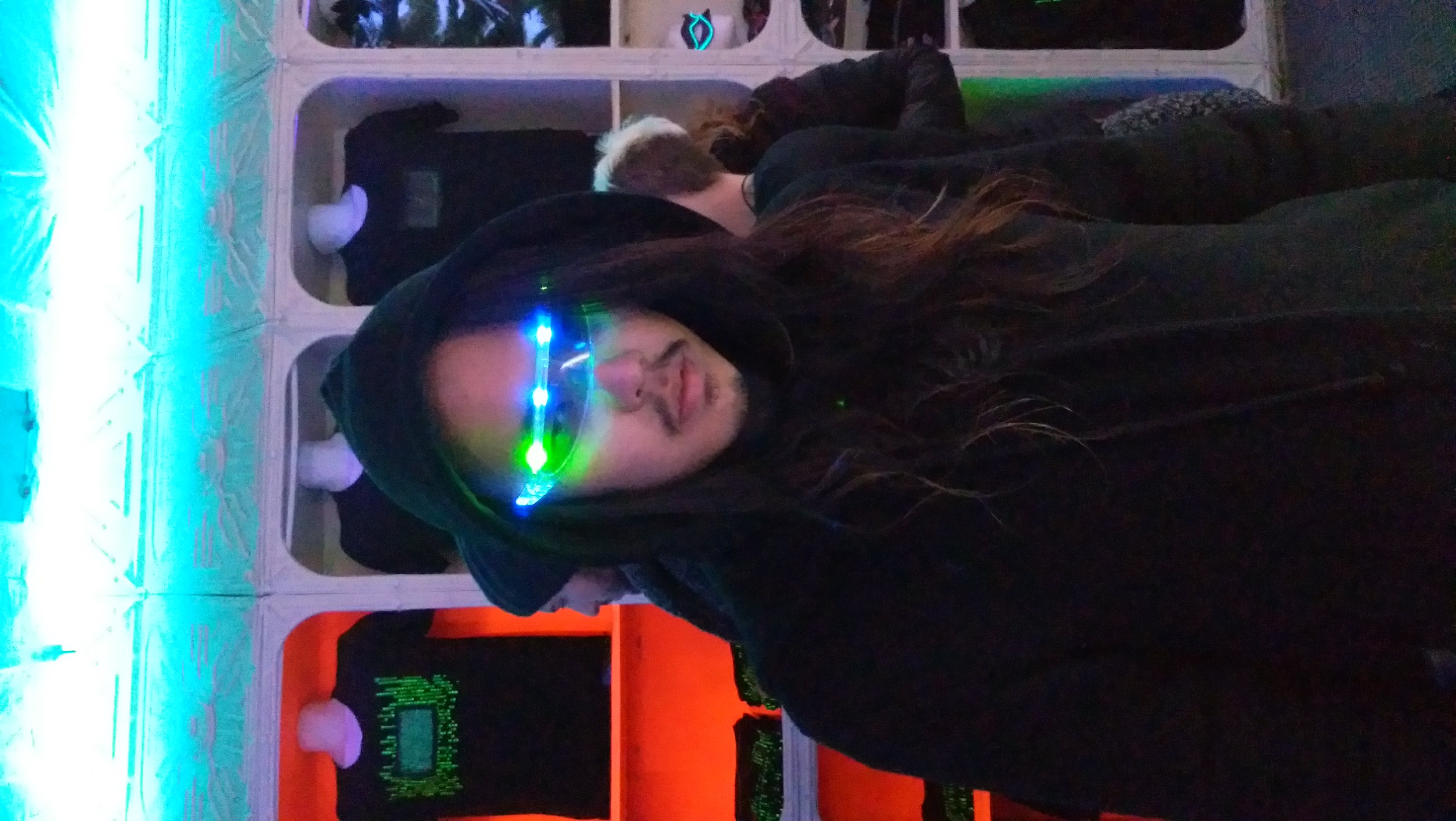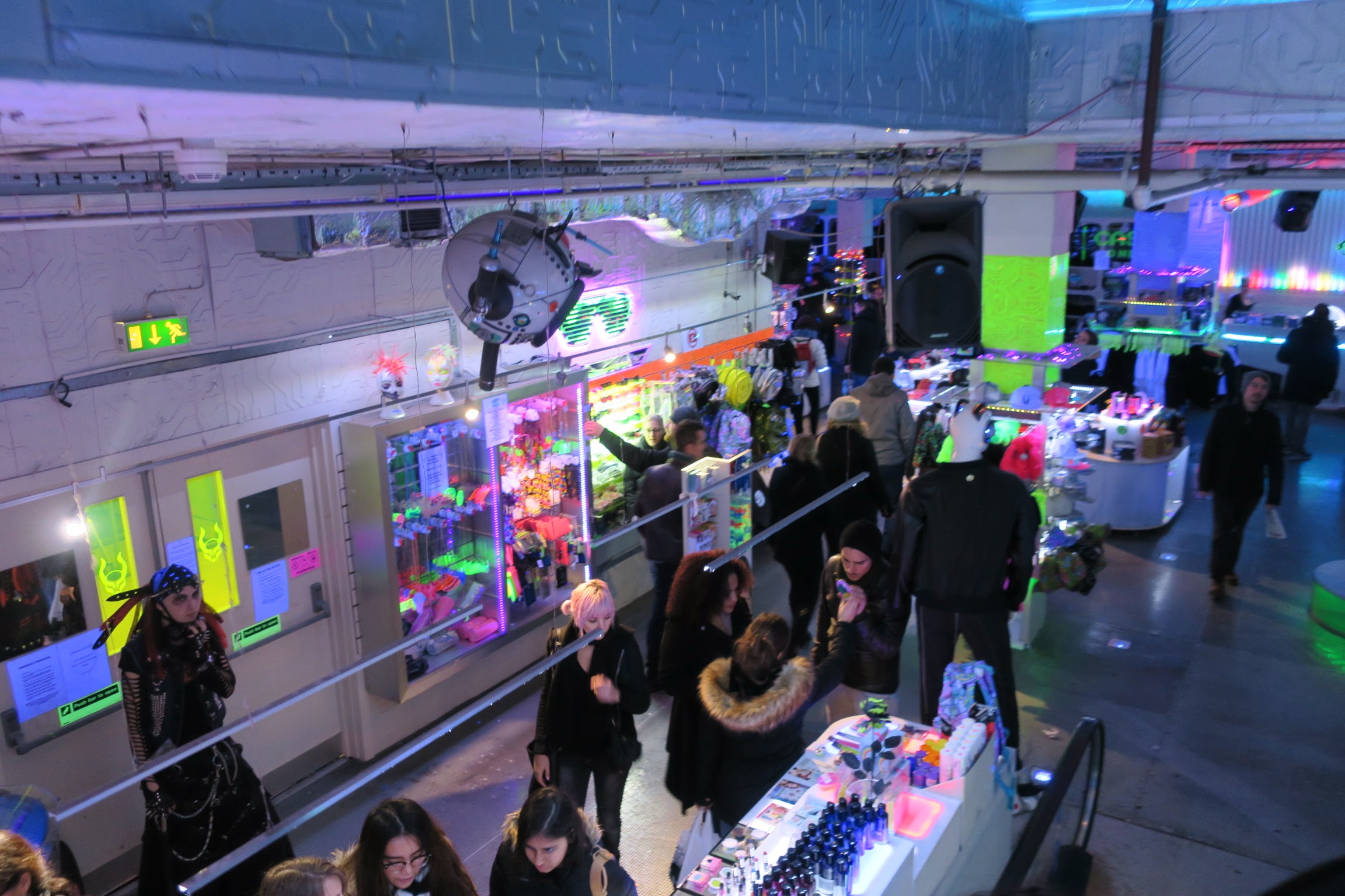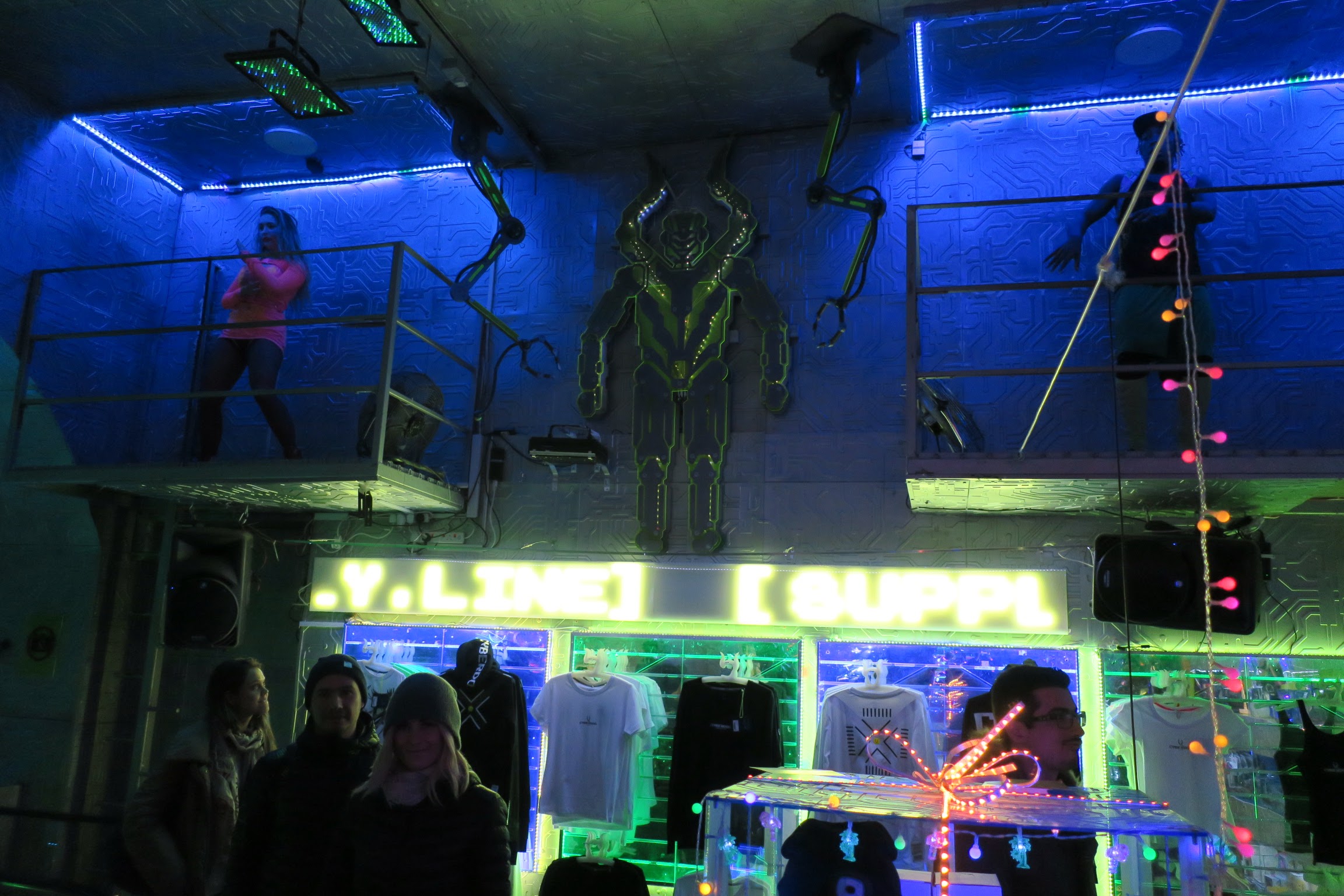 入るとすごいサイバーな音楽と、それにあわせて踊るサイバーな男女がいました。なにこれ!? |