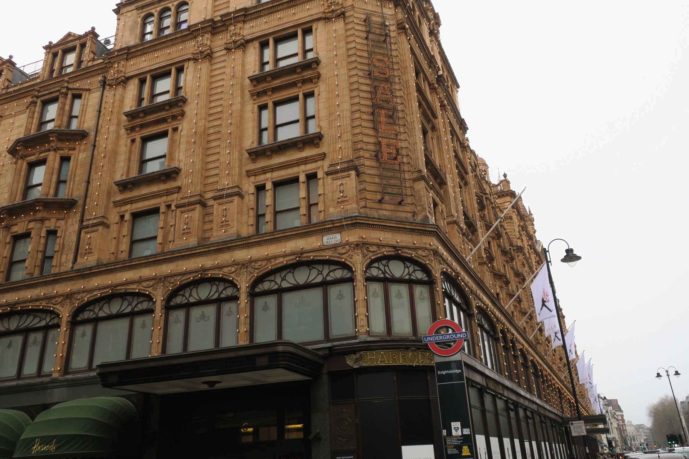 おお、これがハロッズ!夜も見たいなぁ。綺麗なイルミやねやろなぁ。 |