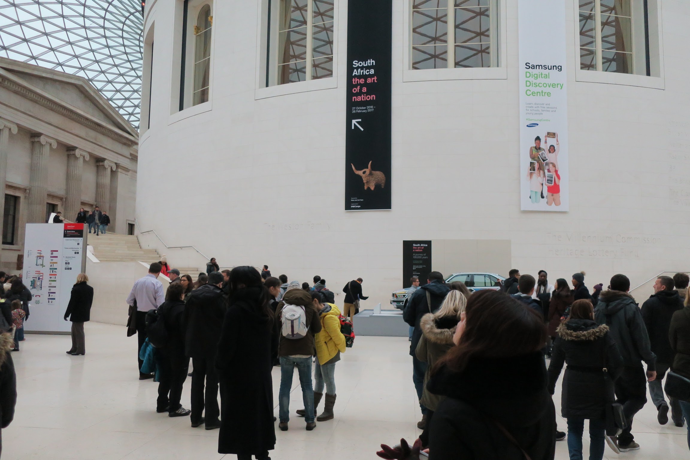 エントランスホール。 大英博物館はなんと無料! というか、寄付制なんです。もちろんわれわれは○○ポンドを寄付させていただきましたよ。 |