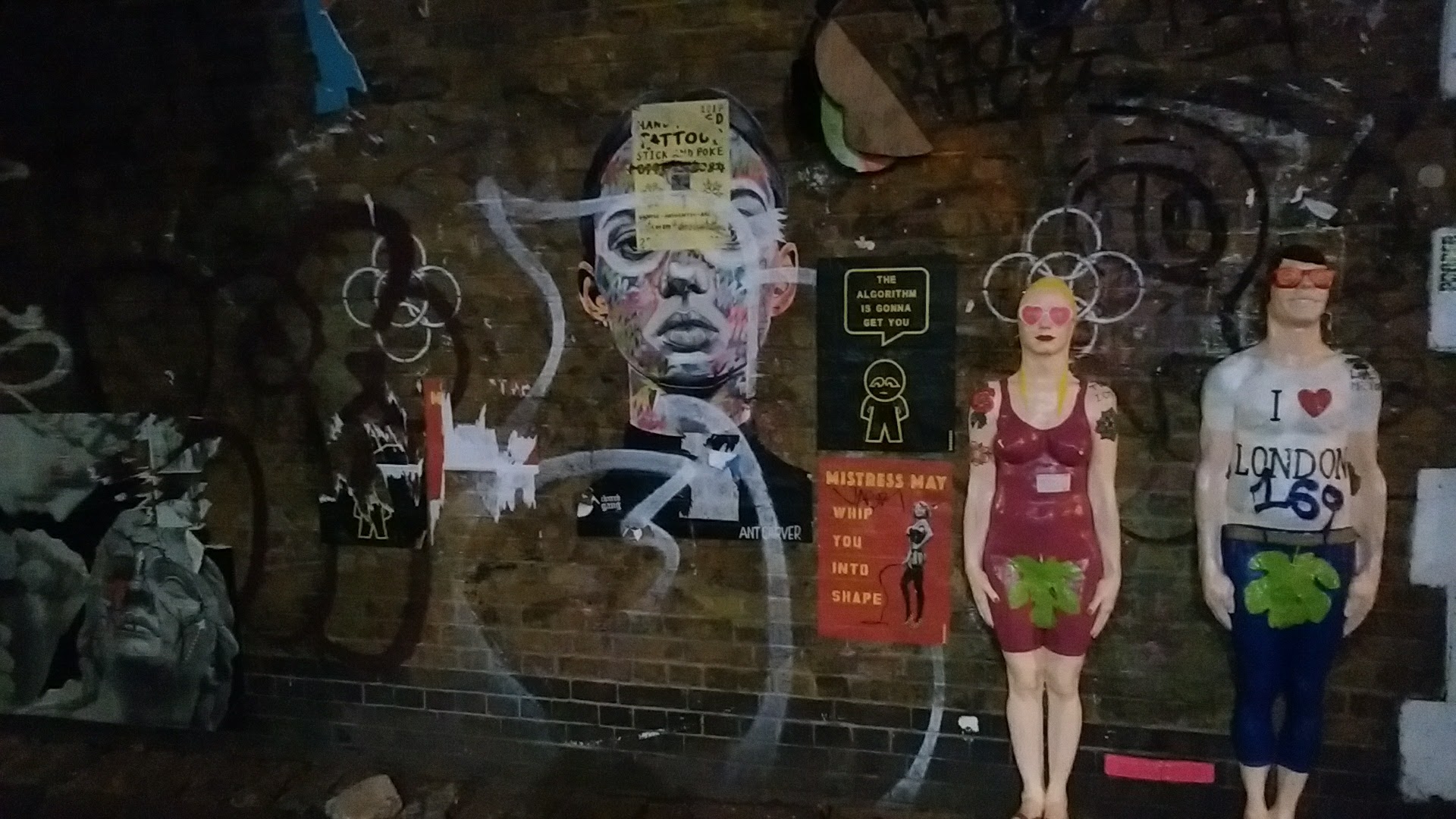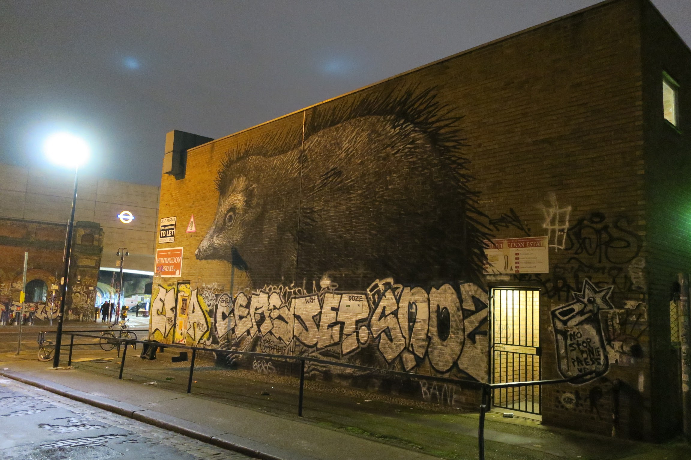 まずはロンドンバスに乗ってショーディッチへでかけました。息子おすすめの街です。 落書き芸術館のBanksyを生み出したロンドンは落書きの街だそうです。 |