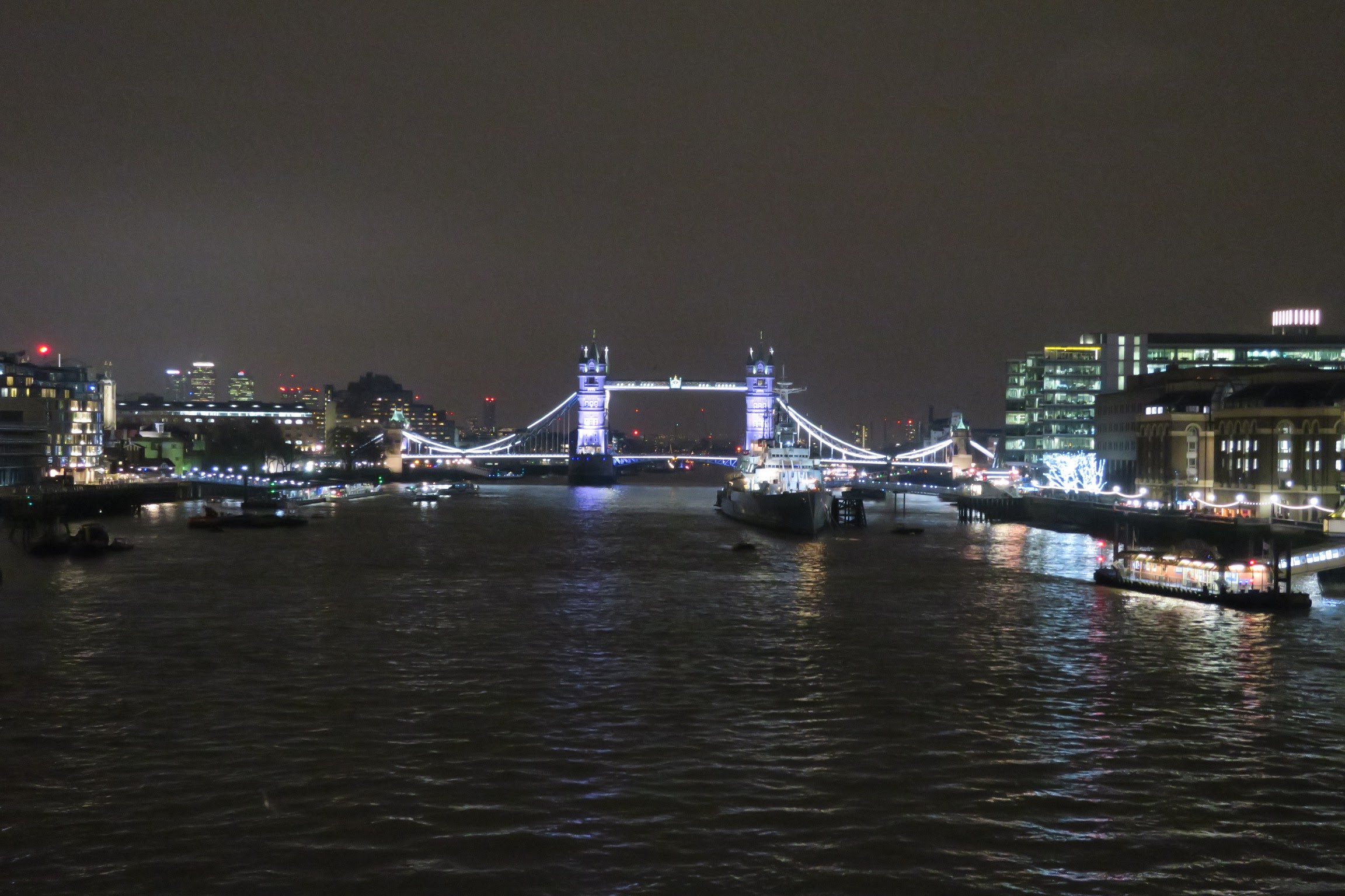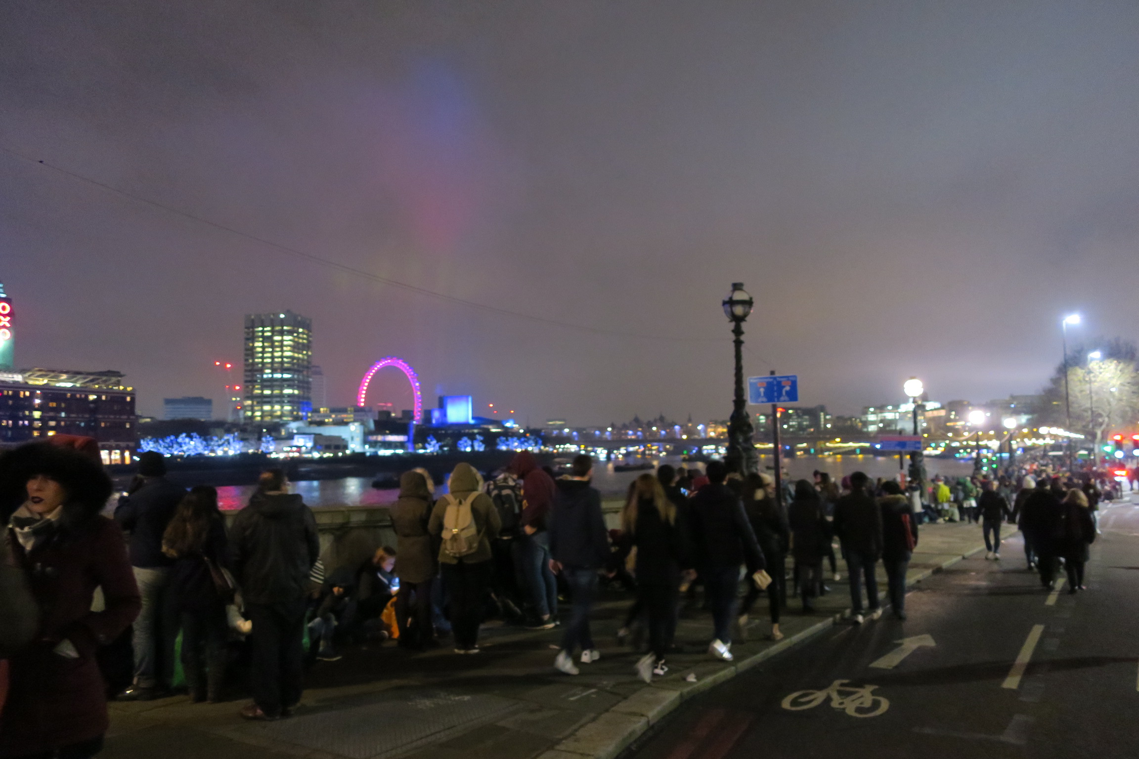 タワーブリッジからランビスブリッジまでぶらぶらと歩きました。途中、カウントダウンメイン会場であるビッグベンの周辺は交通規制されていて大きく回りこむ必要ありで大変でした。 |
