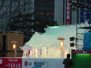 雪像もライトアップされて神秘的です。 |