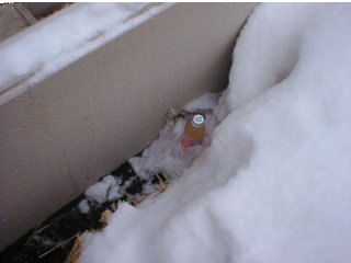 ホテルの植え込みにペットボトルを隠しました。明朝は凍ってるかな!? |
