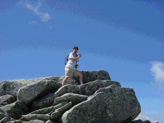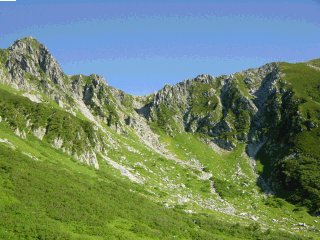 今朝は山に雲もなく快晴でした。早速登山に出かけました。朝の6時からキャンプ場を離れてクルマで5分ぐらいの菅の平バスターミナルまで行きます。クルマはここまでで、あとはバスとロープウェイで2600mまで登ります。上高地と同じく、ここも一般乗用車は乗り入れ禁止です。そういえば乗鞍の畳平もあと2年ぐらいで乗り入れ禁止になるそうです。標高2800mを走ってみたい向きはいまのうちに行っておかないと。この日はおばぁちゃんもいっしょだったのでタクシーでロープウェイ乗り場まで行きました。(バスは1000円/一人、タクシーは3700円。よって4人いるとタクシーの方が得で早いです。バスは駒ヶ根駅からやってくるのでここから乗ると一時間も立っていなければならない可能性が大です。)写真はロープウェイ山頂駅(千畳敷カール)からの眺めです。ここからあの上まで登山です。 |