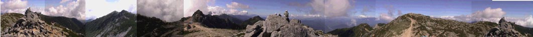 2001年夏(2001/7/29〜8/3)南信州駒ヶ根へ5泊6日のキャンプへ行きました。 今回はおばあちゃんも一緒に、とても涼しくのんびりと避暑を楽しむことができました。 お時間がありましたら是非ご閲覧ください。 上の写真は駒ケ岳山頂付近からの11枚連続写真です。(360度plus) (写真/文章はすべてオリジナルです。無断転載はお断りします。)