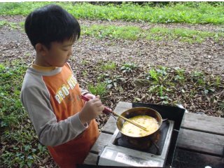 ![]() | おはー!山の朝はいつだって気持ち良い!この瞬間が一番好きです。ゆっくり朝食を作ります。りゅうちゃん特製のプレンオムレツです。 |