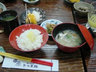 いもご飯とさつま汁の薩摩フルコースですね。さすが居酒屋です。 |