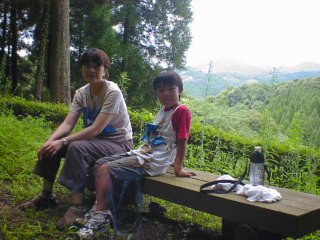 一休みです。大汗をかいていましたが、山の涼しい風に吹かれているとすっと引きます。気温は25度ぐらいでしょうか。 |
