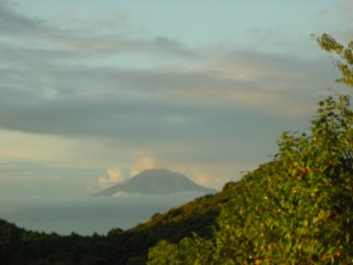4日目の朝がやってきました。これはテントから見える雲海にそびえる桜島です。 |