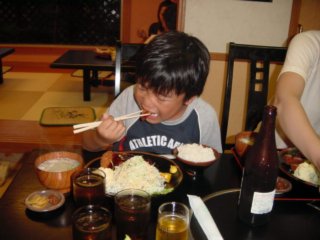 そして今夜の夕食は「霧島黒豚」のとんかつです。ここのお店はTVの「どっちの料理ショー」にも紹介された有名なお店です。行き当たりにしてはすごい店にあたりました。写真はロースカツです。 |