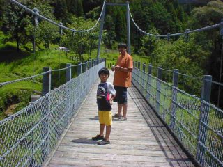 そして近くのつり橋です。ちゃんとネットの柵もあって安全なのにやっぱり超こわい! |