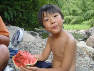 そして川で泳ぎました。息子の目標は「川で泳ぐ」でしたから、これで目標達成です。とてもうれしそうでした。 |