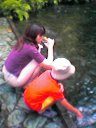 先ずは名水、白川水源の涌き水をいただきました。とっても冷たいです。写真が小さいのは、駐車場にカメラを忘れたため、携帯電話のカメラで撮影したためです。 |