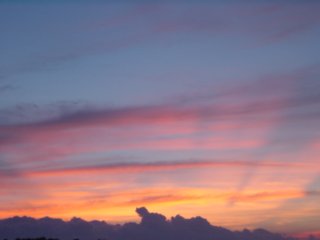 5日目の朝がやってきました。これはテントから見える朝焼けです。今日は最終日であります。17時別府発のフェリーで帰ります。よって早朝出発で阿蘇・やまなみハイウェイ経由で別府までいきます。 |