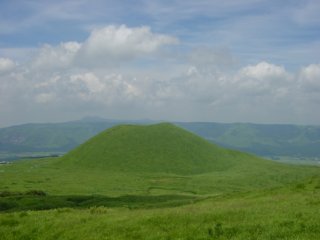 米塚です。中岳噴火口の迫力とちがってこの山はとてもやさしい曲線です。 |