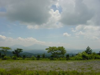 そして先ずは高森から根子岳(ねこだけ)を見にきました。ベストビューなここでは芝生の広場に羊や馬が放し飼いされていました。 |