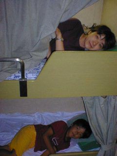 お席は2等寝台です。息子は初めての船中泊ではしゃいでいました。 |