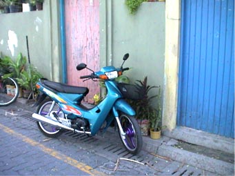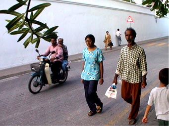モルディブの主な交通機関はバイク(カブ)です。 二人乗りのカブが走り回っています。 | |