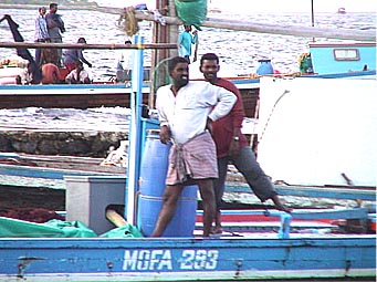 モルディブでは産業がほとんどありません。 唯一活気のある産業といえば漁業でしょう。写真は威勢の良い若い漁師たちです。 | |
