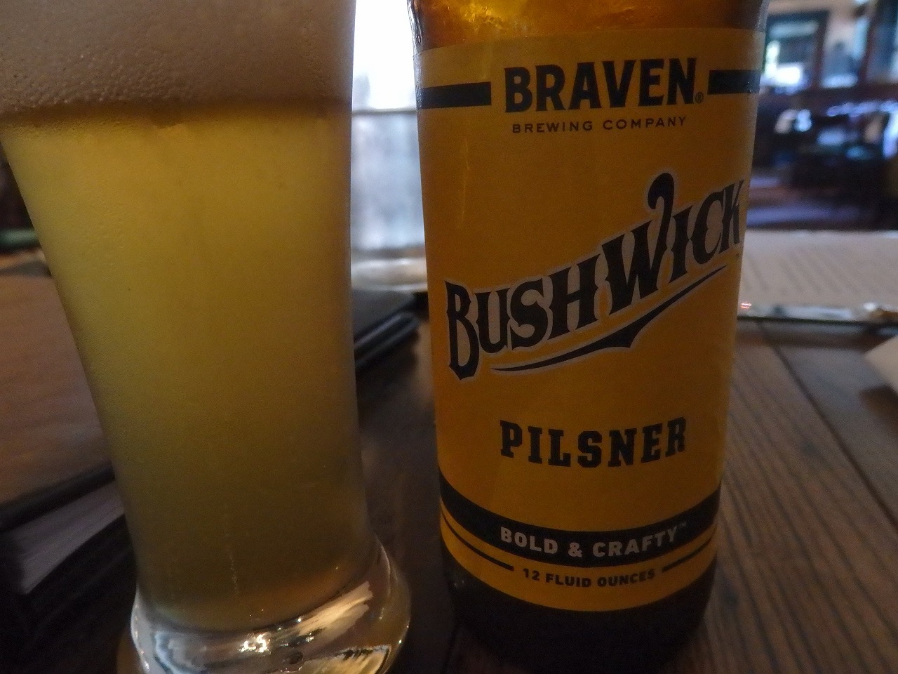 「ブッシュウィック・ピルス Bushwick Pils」 ニューヨークにあるブラヴェン醸造所の製品。明るく豊かな黄色で薄くふわふわした白っぽい泡立ち。パン、軽い酵母の香り。最初はおいしい麦芽と軽いレモンの風味を伴う強い金属の味で最後は草の味わいがします。アルコール度数は5.5%。