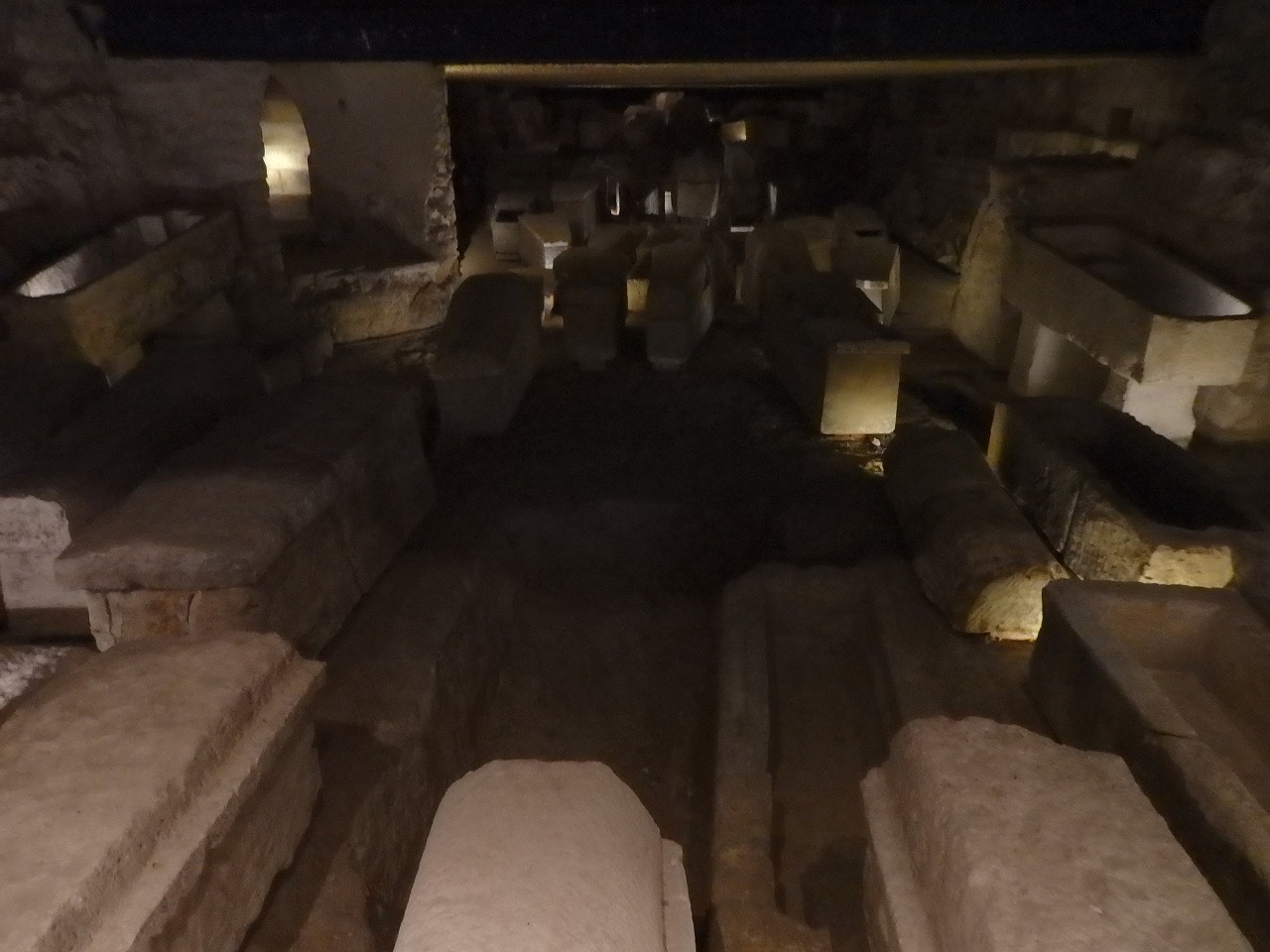 「サン・ドニ大聖堂」 地下納骨室。ここには殉教者サン・ドニの墓所があります。多くの王と王妃の遺体はフランス革命の際、除去されました。古代の王は1793年8月のルイ16世亡命阻止1周年を記念して、ブルボン、バロア朝の王は1793年10月のマリー・アントワネット処刑を記念して取り除かれました。遺体は3つの溝に捨てられ破壊のために石灰で覆われました。