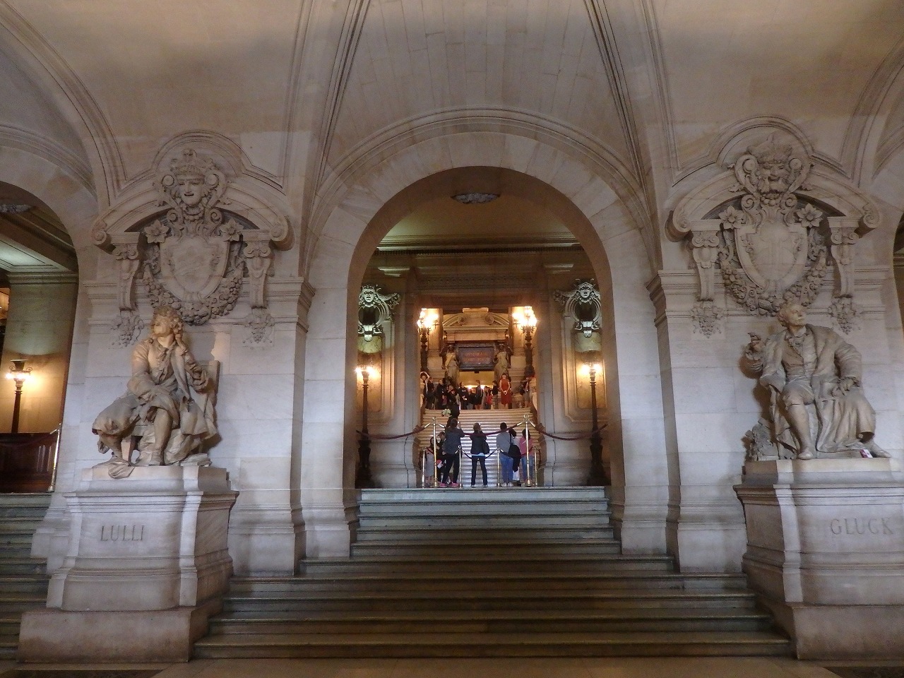 "Grand vestibule" When you enter the room, 4 large stone sculptures catch your eye immediately. They are the great composers in the 17th and 18th century. Left to right, Rameau, Lully, Handel and Gluck sitting. |