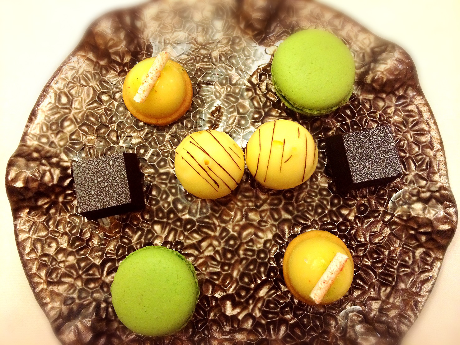 Sweets served with coffee. This dinner was 500 Euros for 2 people. We were satisfied with the 3 hour dinner very much. |