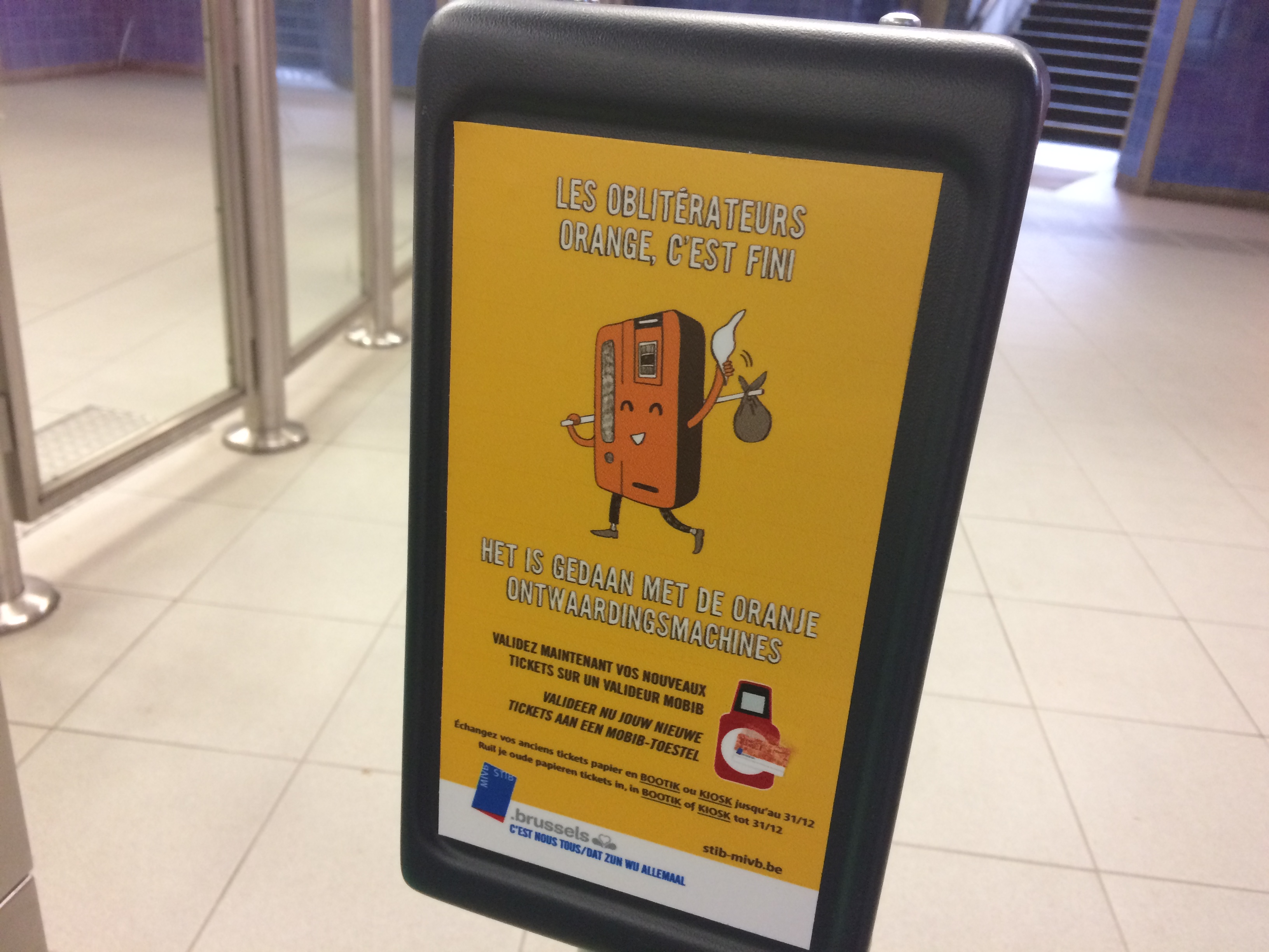 おまけ。 今日から7月。メトロで今まで使えていた紙のチケットが完全に使えなくなります。昨日まではこの機械にさしこんで刻印して使っていました。