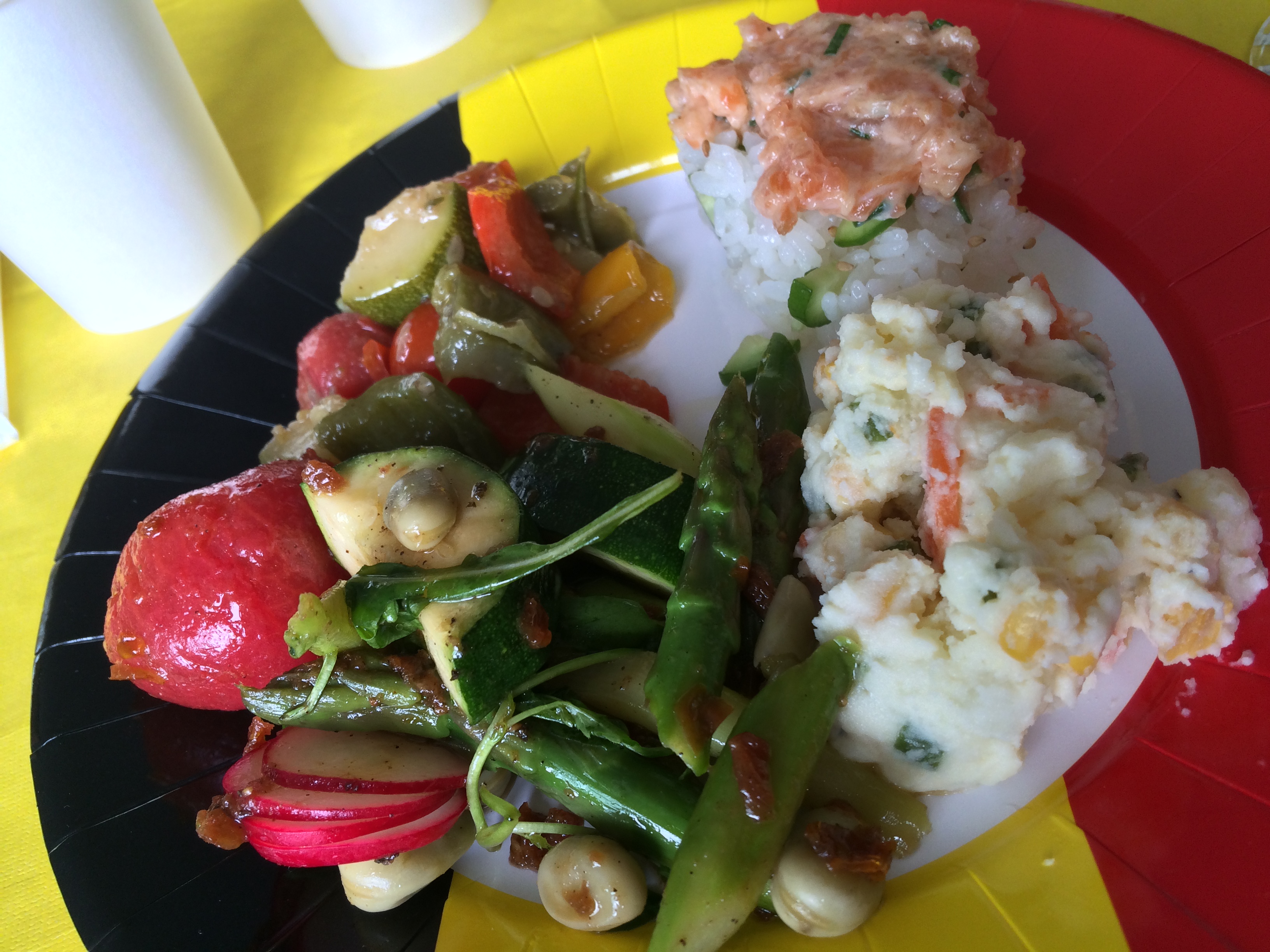 We held a potluck supper at my house. Every time participants' potlucks are upgraded, a lunch becomes extravagant. |