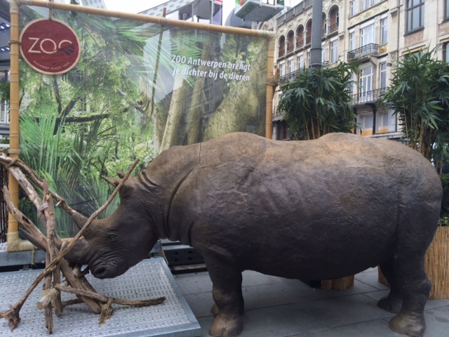 アントワープにおでかけランチ。 駅前にアントワープ動物園のディスプレイができていました。