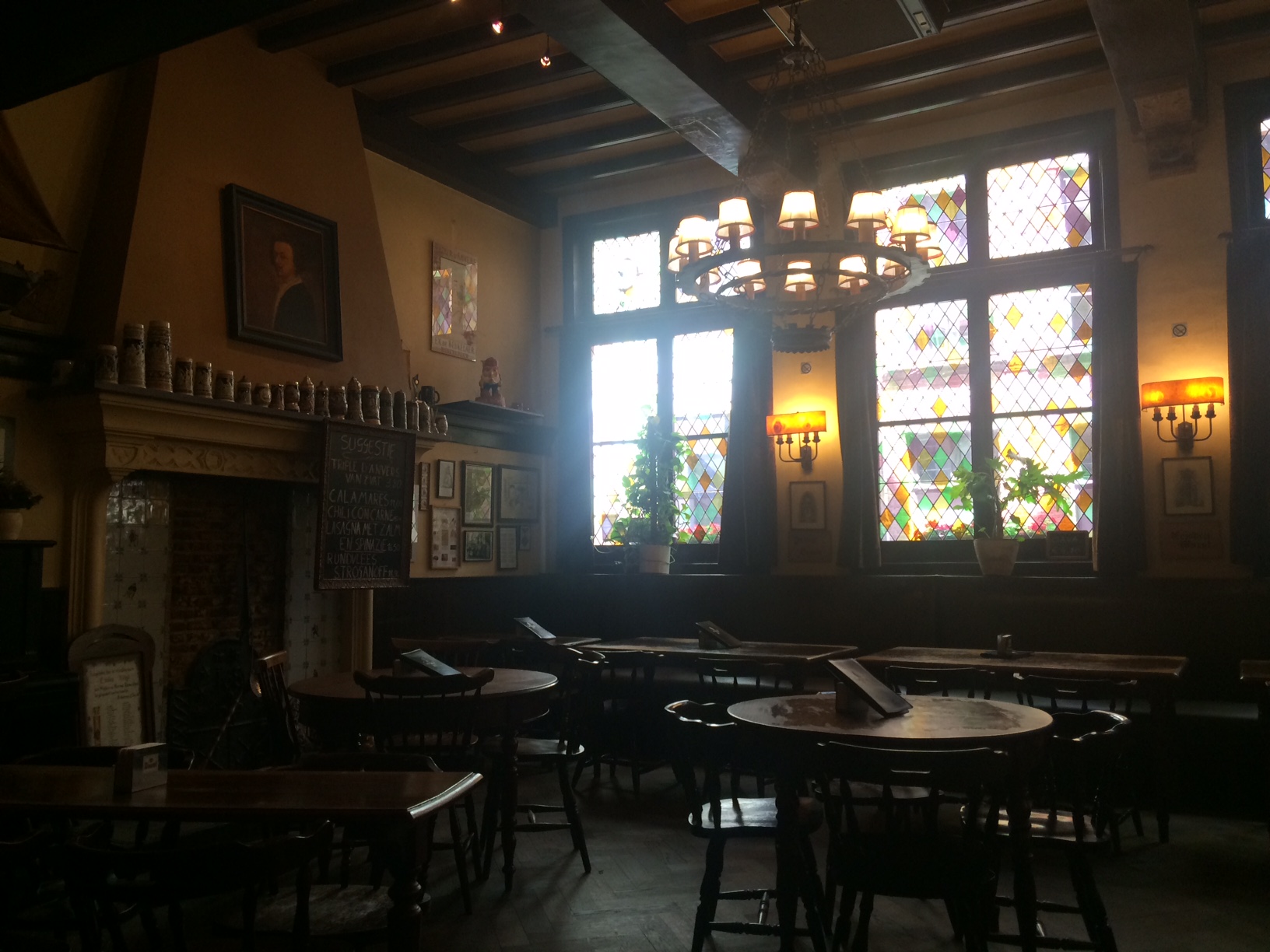 "De Foyer" in Antwarp. The restaurant where the hemispherical high ceiling and a luxurious chandelier are impressive. I wanted to eat a lunch here, but the restaurant is open only on weekend. |