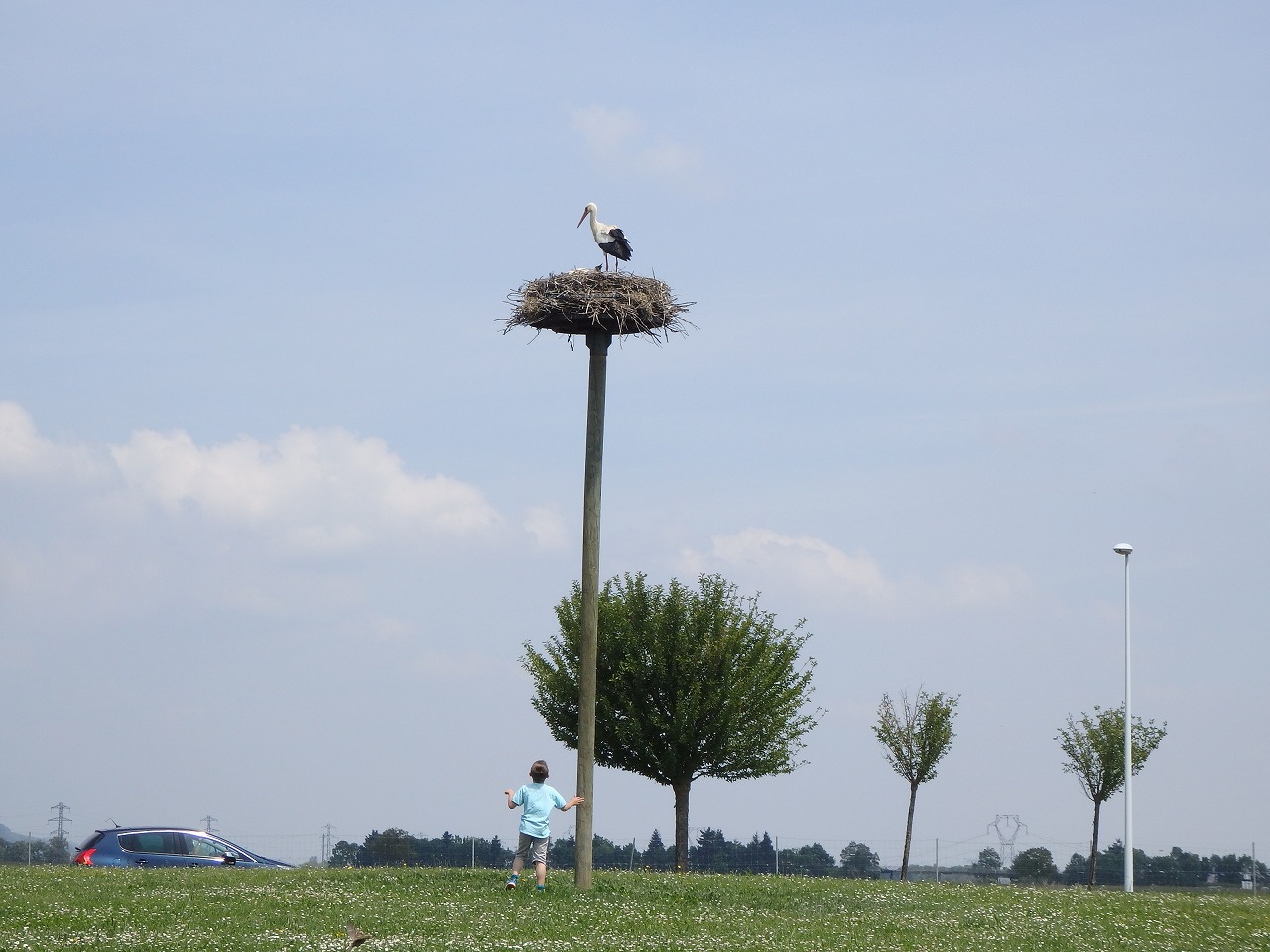 花の季節にアルザスの村をめぐります。途中、高速のサービスエリアのピクニックエリアでランチ。アルザスはフランスの中でこうのとりが最も営巣しているエリア。高速のサービスエリアにもいましたー。