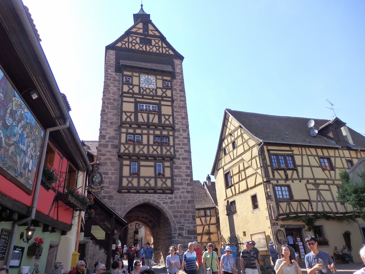 "The Dolder" came into our sight. The tower was the gateway to Riquewihr built at the same time as the wall in 1291. It was used to defend the village against foreign intrusion using its watchtower installed on the belfry. Dolder means "the highest point" in Alsace. The belfry has a height of 25 meters. |