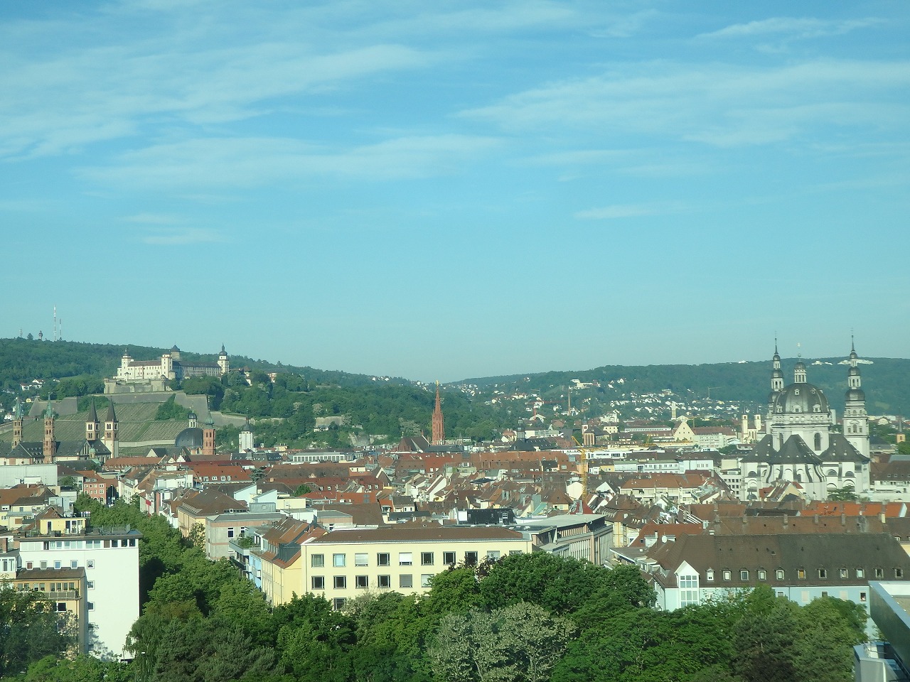 We can look out over the old town of Wurzburg from the fortress. It is located at the Main on the opposite side of the city of Wurzburg. |