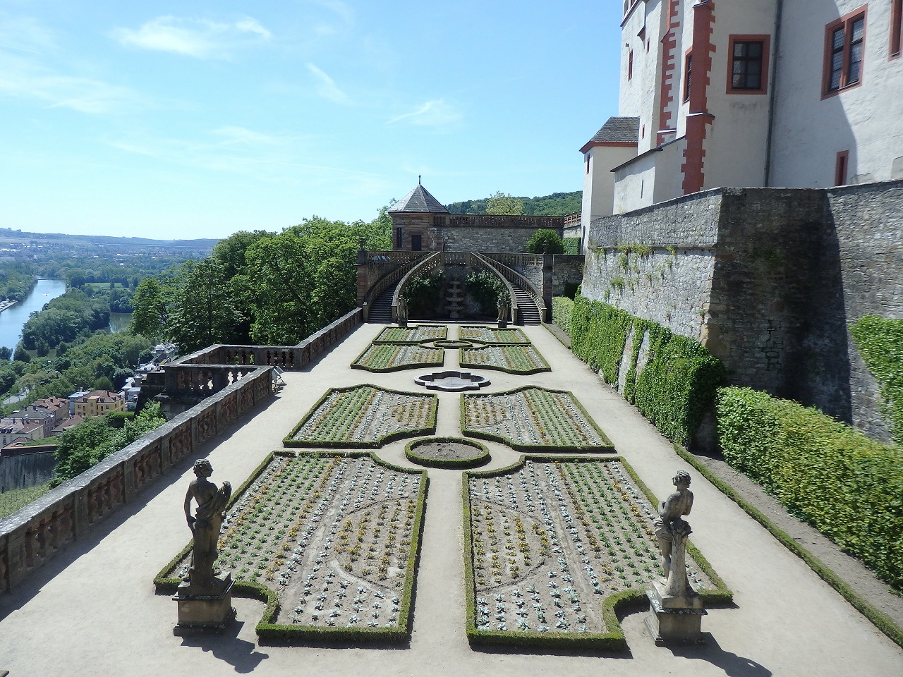 We arrived. It was served as a home of the local prince-bishops for nearly five centuries. It has been a fort since ancient times. Most of the current structures originally were built in Renaissance and Baroque styles between the 16th and 18th centuries. After Gustavus Adolphus of Sweden conquered the area in 1631 during the Thirty Years' War, the castle was reconstructed as a Baroque residence. After it ceased to serve as residence of the Bishops of Wurzburg, the fortress saw repeated action in the wars of the late 18th and 19th centuries. |