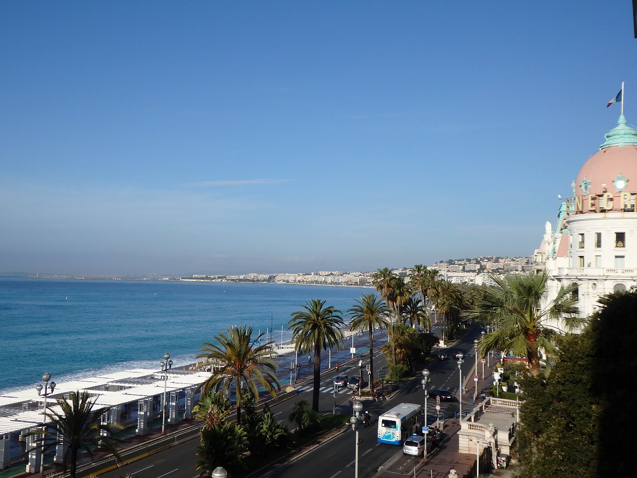 ホテルの部屋から「プロムナード・デザングレ」。18世紀後半、多くの裕福な英国人がニースで冬を過ごし、海岸沿いの風景を楽しみました。おやすみなさい。