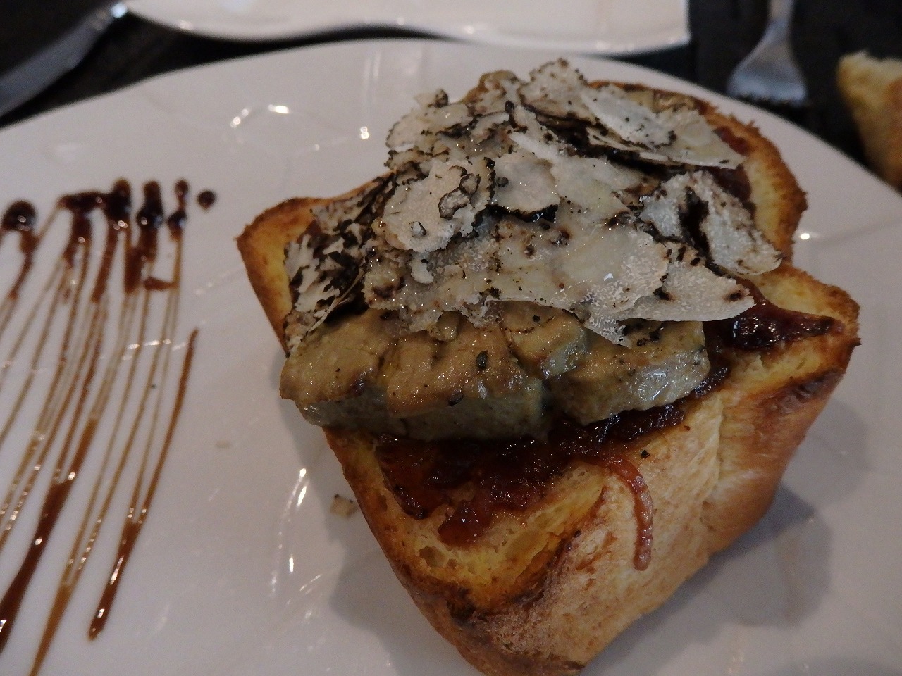 フォアグラ!外はぱりぱり、中はとろとろに仕上げてもらいました。リゾットも添えられていて、前菜とは思えないボリューム。