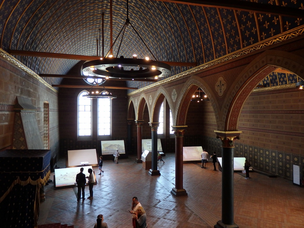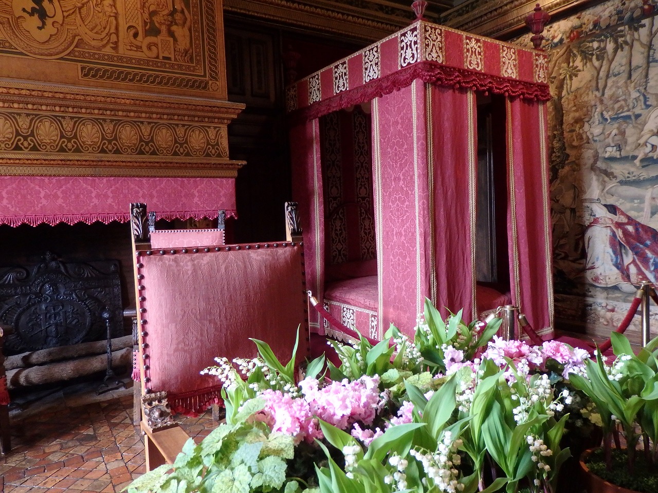 There are a lot of trophies because it was a hunting lodge. The massive rooms, open windows and high ceilings meant heating was impractical. Similarly, as the chateau was not surrounded by a village or estate, there was no immediate source of food other than game. This meant that all food had to be brought with the group, typically numbering up to 2,000 people at a time. |