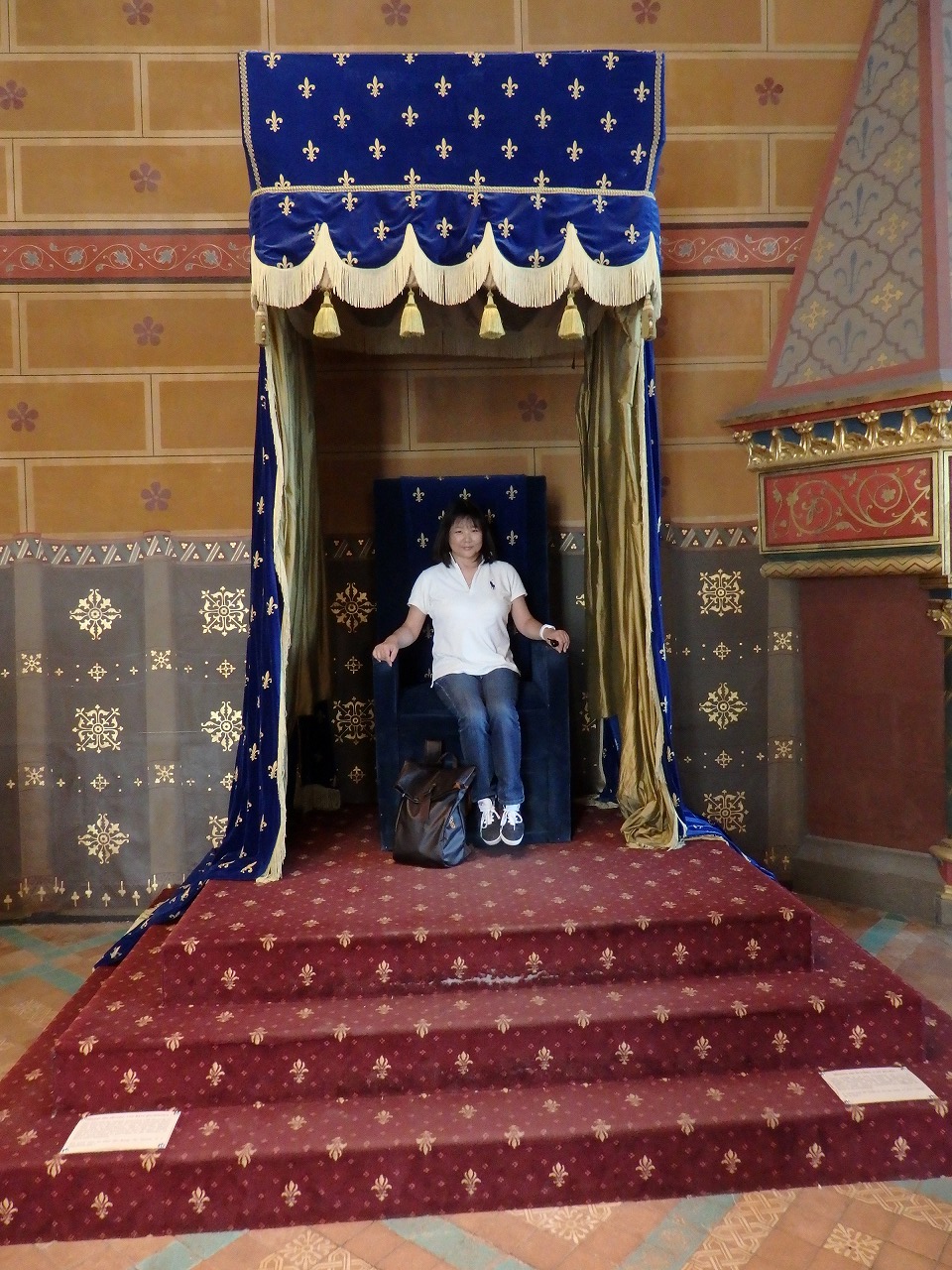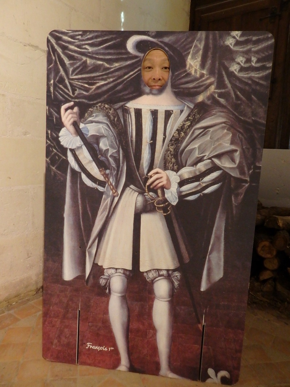 入り口にこんなのあったから。日本人、顔大きすぎ。城には440の部屋、282の暖炉、そして84の階段室があります。