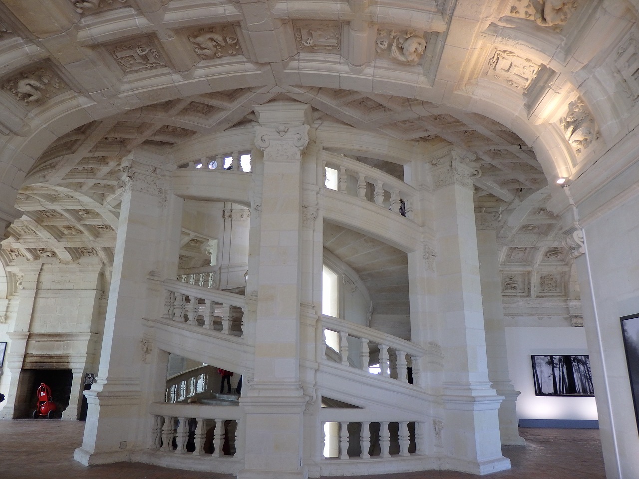 有名な2重螺旋階段です。2つの螺旋階段は交わることなく3階まで続いています。フランス・ルネッサンス様式の傑作とされ、フランソワ一世がフランスに招いたレオナルド・ダ・ヴィンチが設計に関わっているのではないかと言われていますが、確認はされていません。