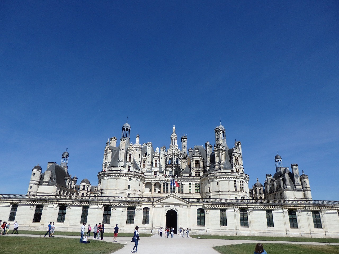 ロアールで一番人気の「シャンボール城」。朝一番オープン時間に合わせて行きました。いいお天気です!シャンボールは1519年から47年にわたる28年の建設期間中に相当改造されました。
