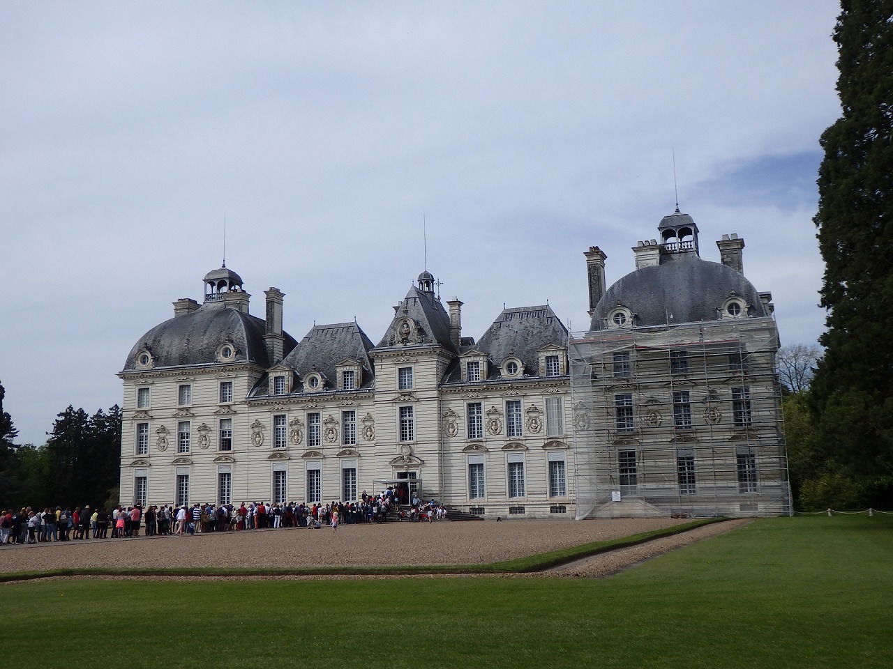 We arrived at "Chateau de Chenonceau" behind the schedule. We walked along an avenue lined with trees to go to the castle. |
