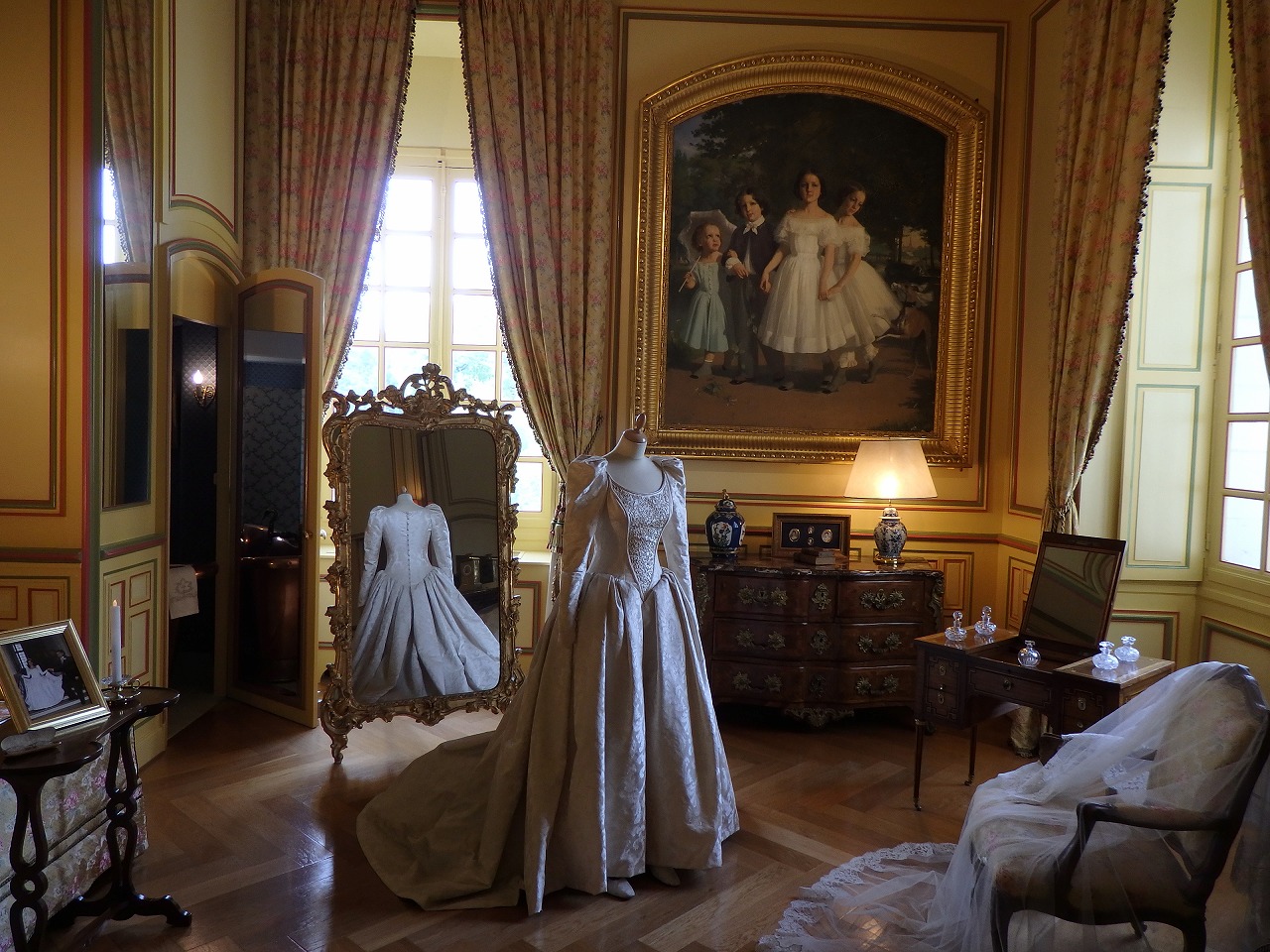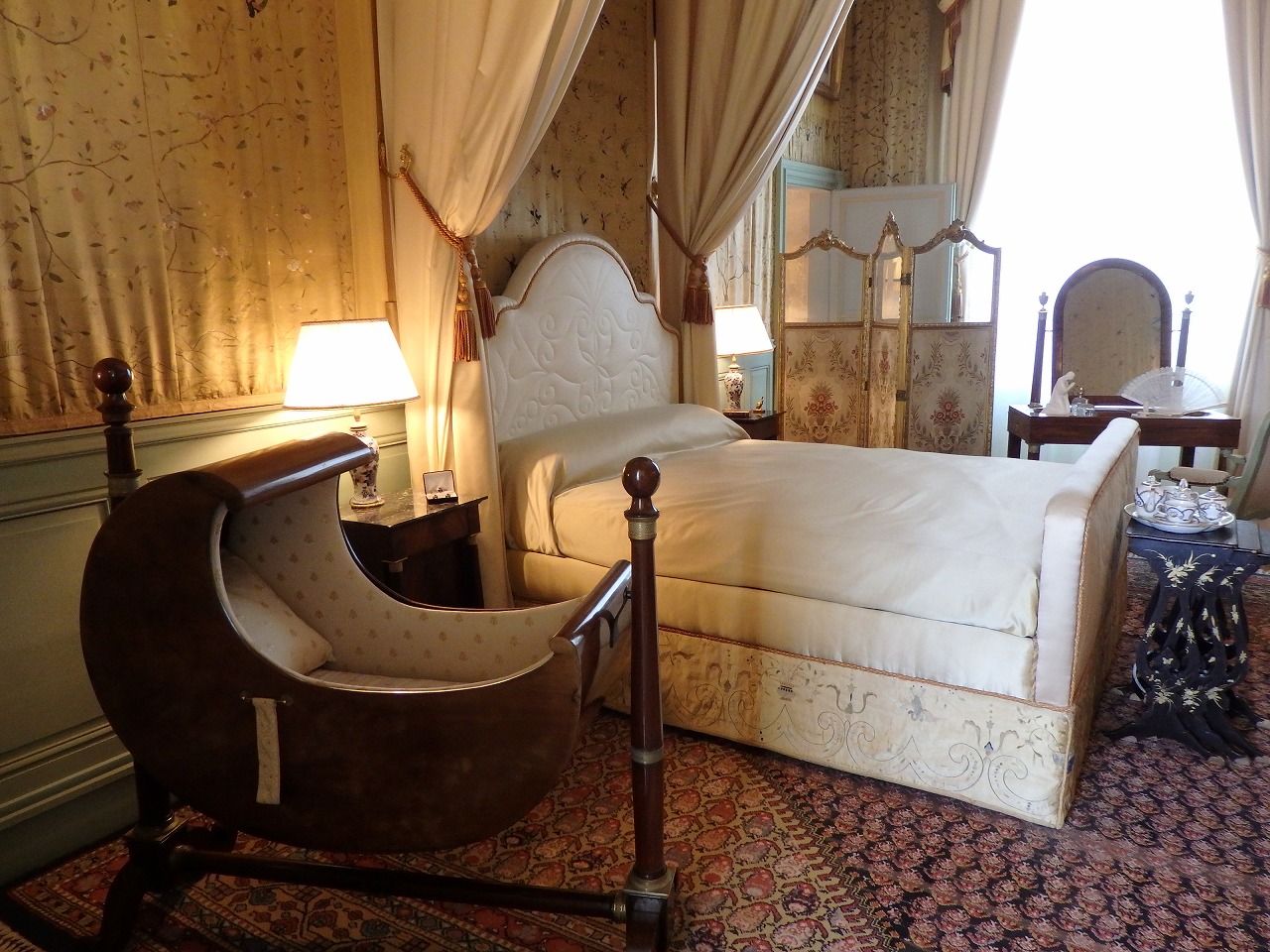 「どんだけ広いねん」と思いながら庭を見ています。1792年、革命政府は内装の売却を命じました。壁のパネルははずされ床板さえ取り除かれ、その木材の価値で売られました。パネルドアはその売却の最中に暖をとるため燃やされ、空っぽの城はナポレオン・ボナパルトが彼の次席であるルイ=アレクサンドル・ベルティエに与えるまで廃却されたままでした。