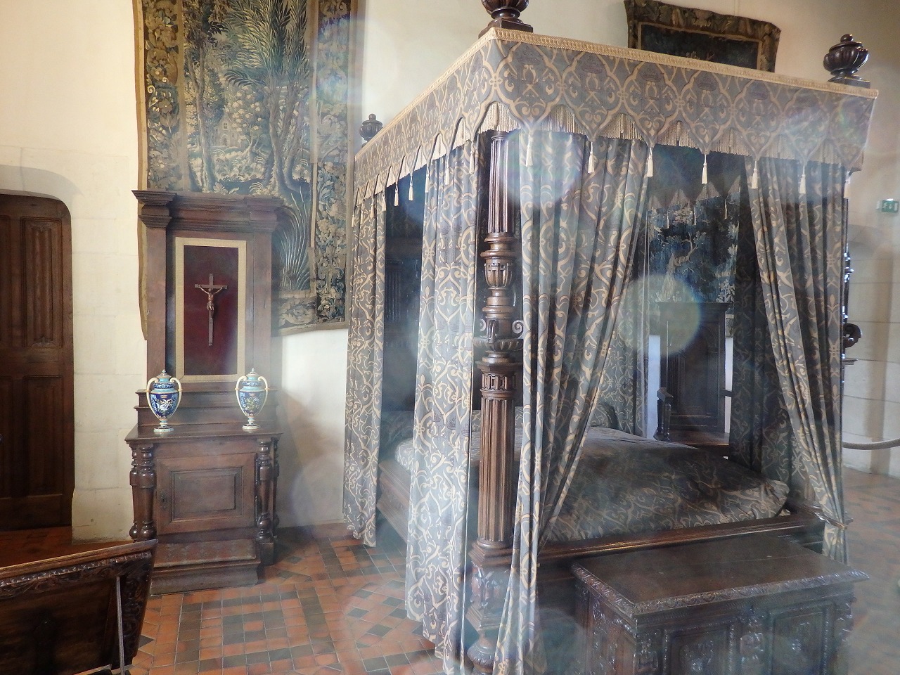 「ディアーヌ・ド・ポワティエの部屋」 1547年、アンリ2世は城を愛人ディアーヌ・ド・ポワティエへのプレゼントして与えました。1555年に彼女は建築家Philibert de l'Ormeに川の反対側に城をつなげるアーチ橋の建設を命じました。