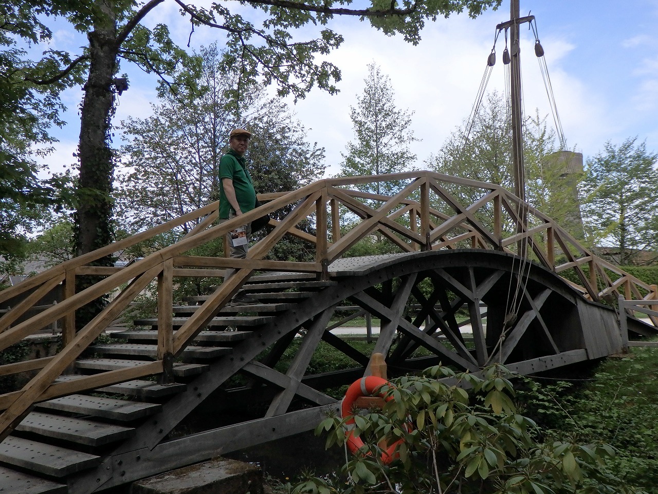 広い庭はテーマパークのようです。森林公園のあちらこちらにダ・ヴィンチの発明品が展示されていて、子どもたちが実際に触って楽しめます。