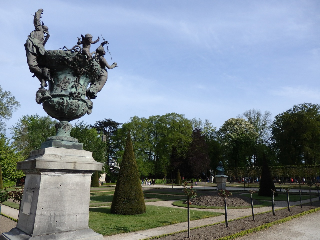 We appeared on the terrace. The chateau is surrounded by a 52.5-km2 wooded park and game reserve maintained with red deer, enclosed by a 31-kilometer wall. The garden is open tothe public as a park. The area here is equal to Paris. |