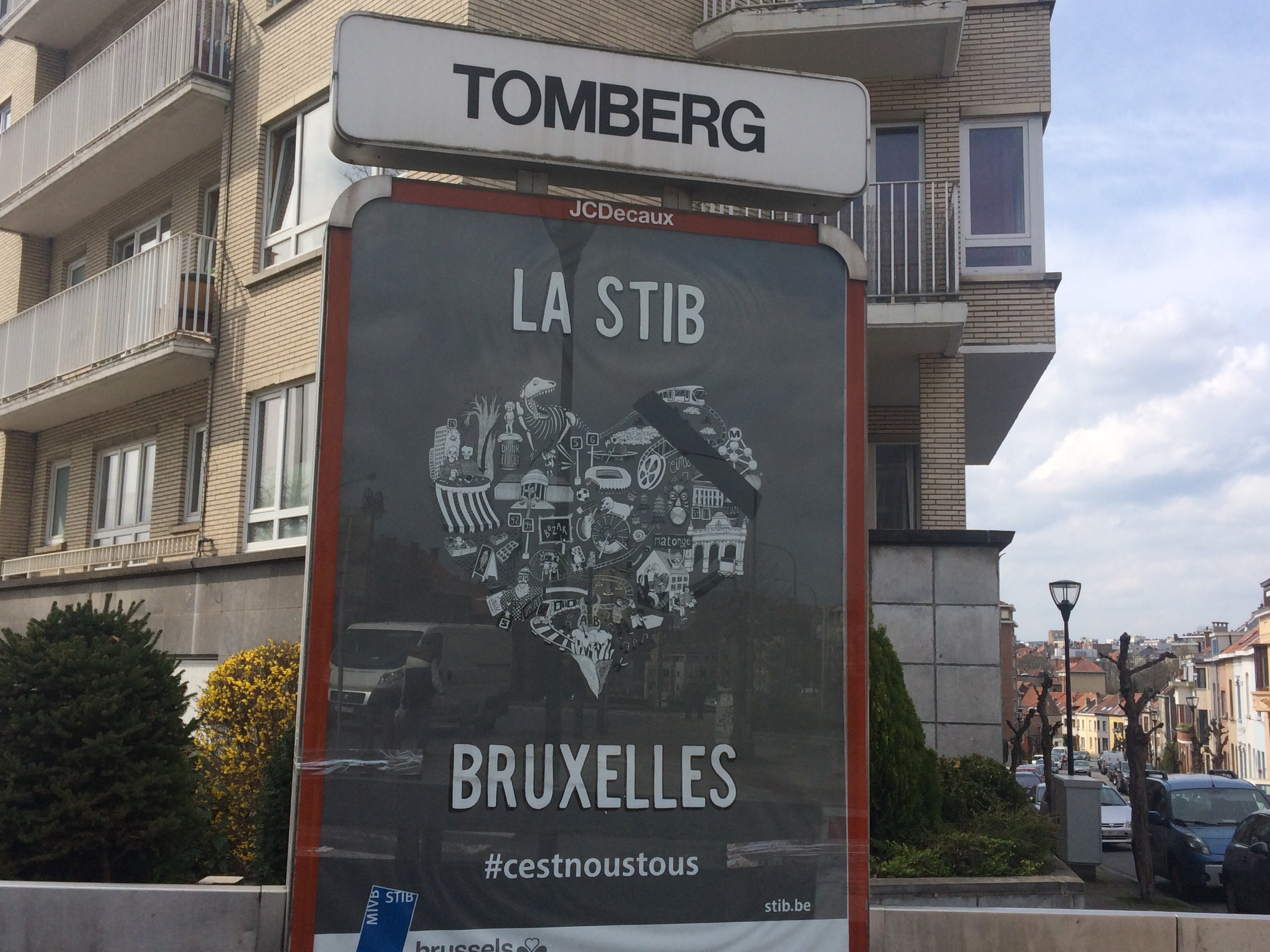 最寄りメトロの駅にあるポスター。いつもはポップな色なのに今はこんな感じ。早く全線開通しますように。