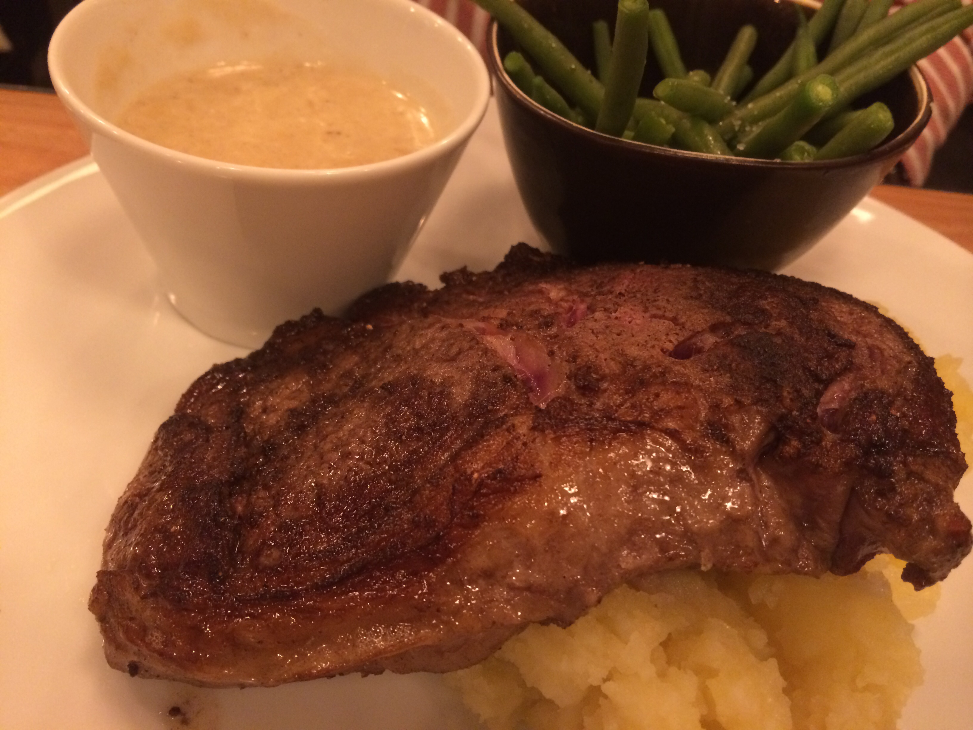 Beaf steak. The quantity is 350g. As expected, I couldn't eat all. |